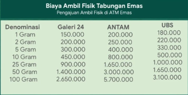 - Biaya top up Tabungan Emas minimal Rp10.000 dan maksimal 100 gram per hari.