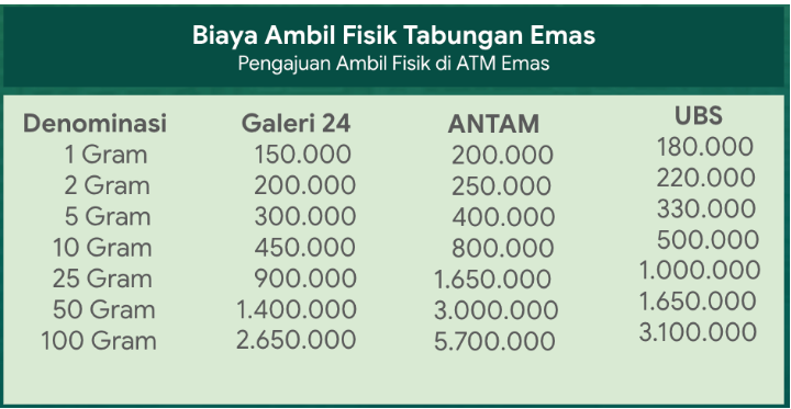 Biaya transaksi ambil fisik Tabungan Emas via ATM Emas