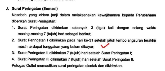 Alur Somasi Surat Peringatan untuk nasabah kredit macet produk angsuran akan diberikan sebanyak 3 kali: (update 11 September 2025)